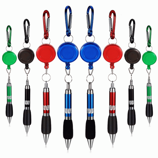 The keychain clip and pen are removable, so you can take off or use both of them, here is a lanyard hole on the pen, so you can hang it on other items as you like. Our retractable badge reel pens measure approx. 8.5 x 1.25 inches in length and width, suitable size and lightweight makes it easy to hold, carry and store. This badge reel pen is retractable, secure and sturdy enough for you to pull, it can be pulled up to approx. 29 inches, you can pull its length according to your needs, provide you enough operate space, the retractable pull pens are blue ballpoint pens. Our retractable badge reel pens are practical tools for kids, students, teachers, teens, businessmen, office worker and so on. It is available for attaching to keys, lanyards, work cards, students' cards, backpacks, and belt.