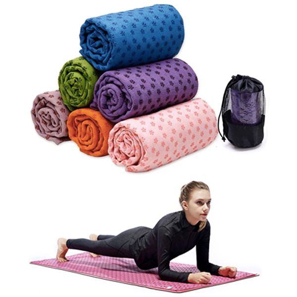 This yoga mat towel is made from 100% microfiber with international technique, soft, absorbent and provides excellent grip for the toughest poses. It packed with mat towel in a carry bag. The size measured 72"x24". It comes with dual function. The towel has grips on one side, so you can use it as gripper on mat or floor to keep towel from bunching up. Or walking on the grip side,which will massage the foot, promoting blood circulation. Superfine microfiber towel optimizes moisture absorption, and bring a soft, suede-like feel. It outperforms ordinary cotton or polyester towels in many types of yoga and gym sessions. It is machine washable and durable mat towel has a good effect on antibiosis and extend the life of your mat.